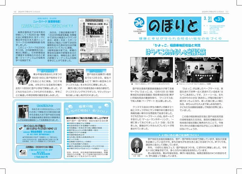 登戸地区社会福祉協議会の広報紙「のぼりと」の第31号が発行されました。