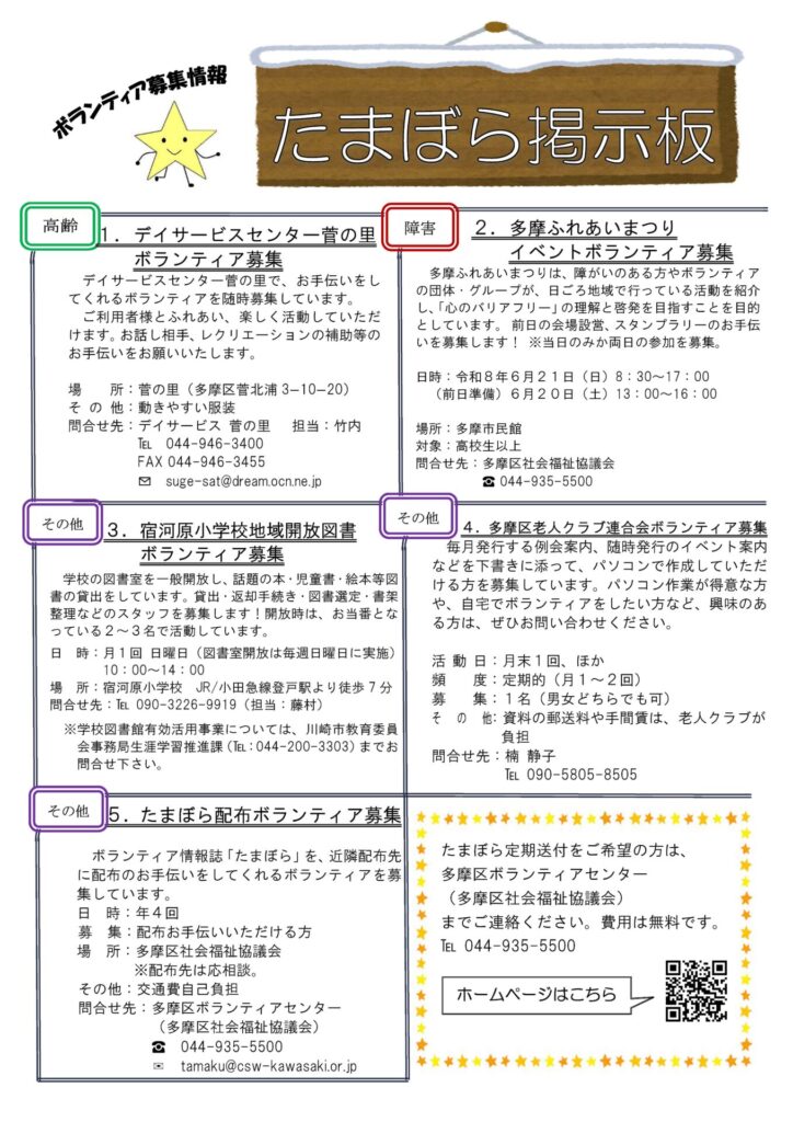 多摩区のボランティア情報誌『たまぼら』第109号のPDFはこちらをクリック