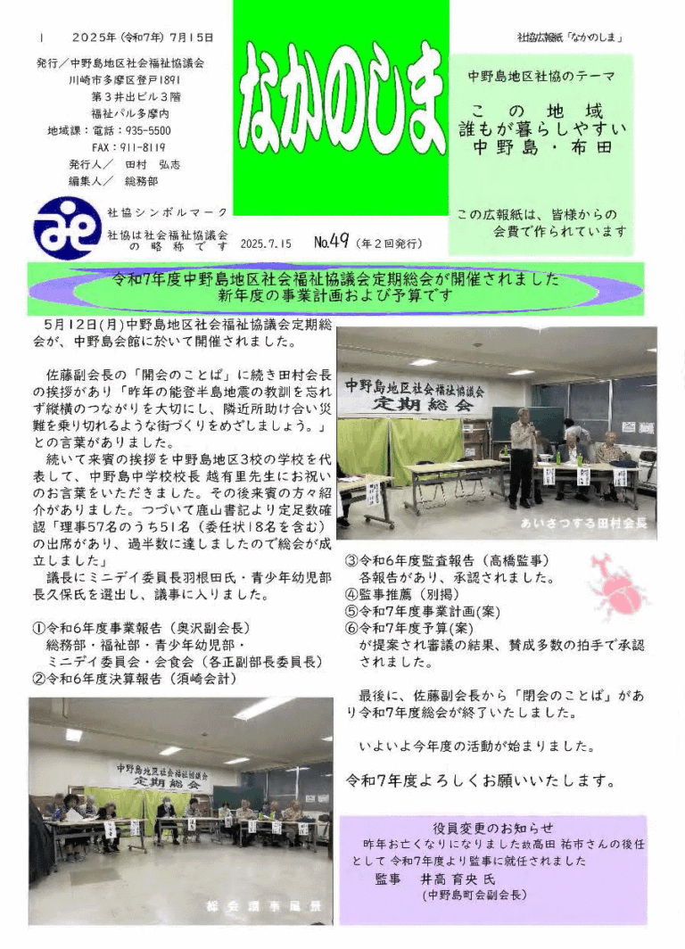 地区社協広報誌「なかのしま」第49号発行