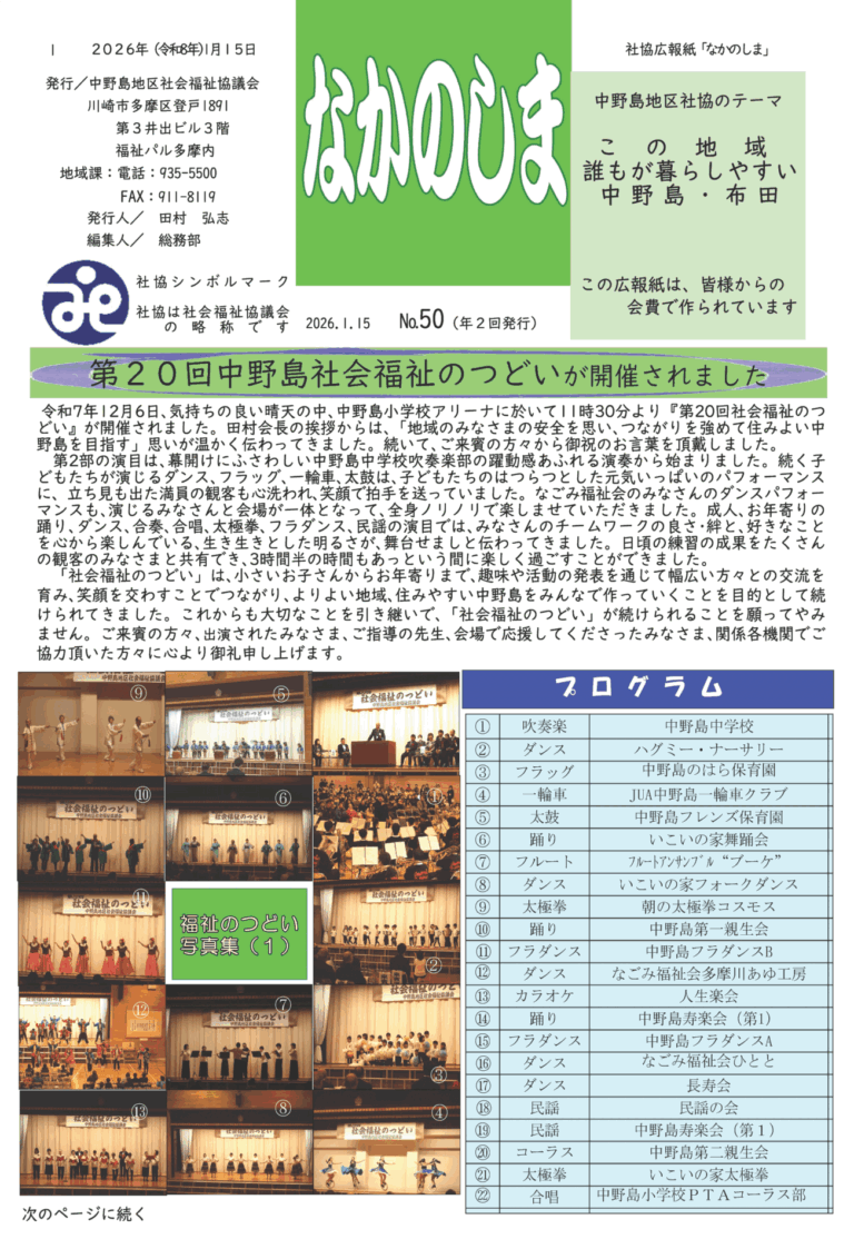 地区社協広報誌「なかのしま」第50号発行