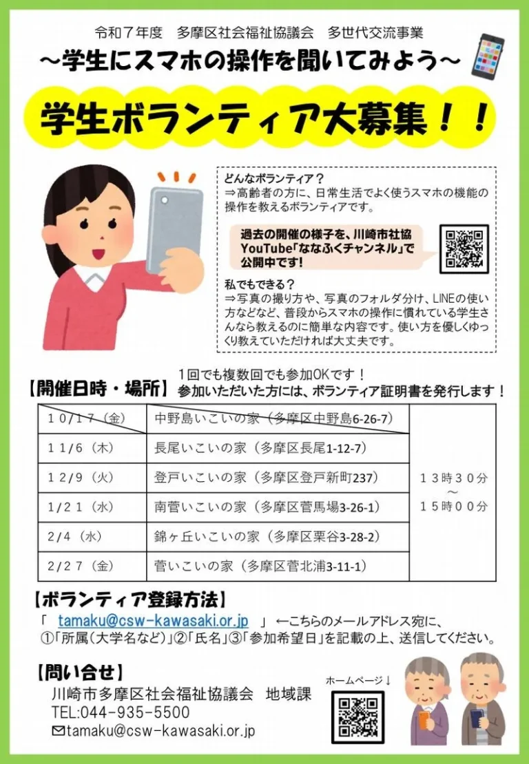 学生にスマホの操作を聞いてみよう 学生ボランティア大募集!
