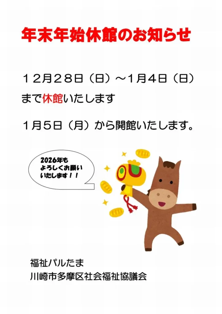 福祉パルたま 年末年始のお知らせ