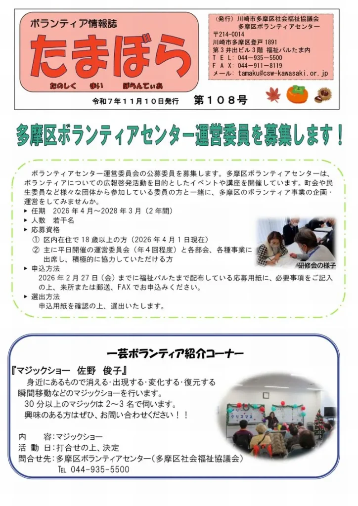 多摩区のボランティア情報誌『たまぼら』第108号を発行しました