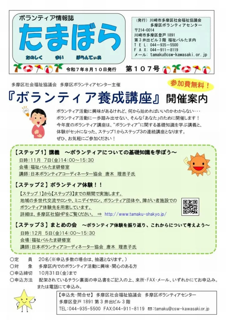 多摩区のボランティア情報誌『たまぼら』第107号を発行しました。