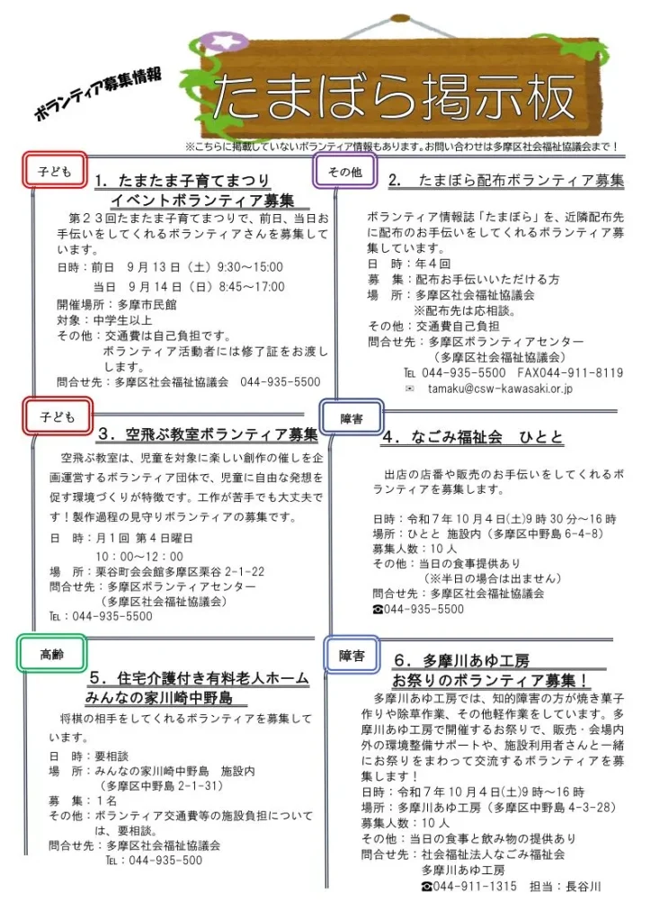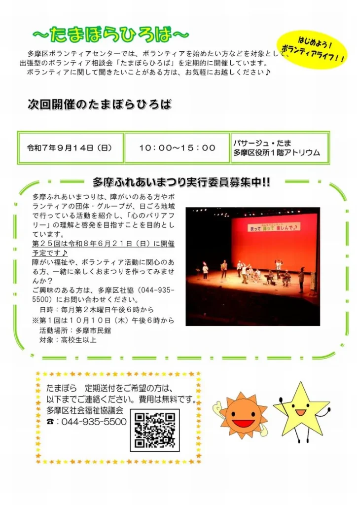 多摩区のボランティア情報誌『たまぼら』第107号のPDFはこちらをクリック