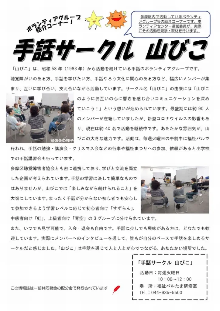 4面にはボランティアグループ「山びこ」の活動紹介をしておりますので、ぜひご覧ください。